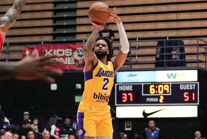 打爆开拓者二队!湖人二队后场新秀估计会引起NBA球队的关注?